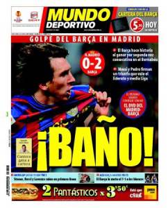 Il quotidiano spagnolo, El Mundo Deportivo, molto vicino ai catalani del Barcellona, esalta la vittoria dei blaugrana, considerando l’impresa sul Real Madrid come un bagno. Ennesima prova stratosferica della “Pulce” Lionel Messi. L’argentino, dopo le grandissimi prove nella Liga e in Champions, si avvia verso il secondo Pallone d’Oro consecutivo.