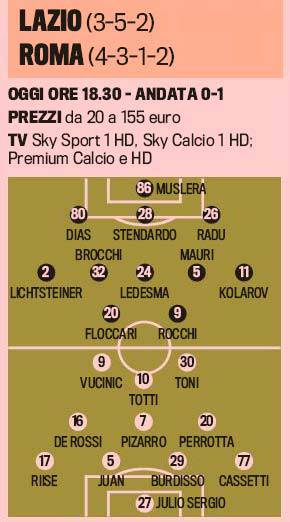 ROMA – In attesa dell’importantissimo derby di stasera tra Lazio e Roma alle ore 18,00 allo stadio Olimpico, la Gazzetta dello Sport ha ipotizzato le probabili formazioni di entrambe le squadre. I biancocelesti vogliono far perdere lo scudetto ai cugini mentre i giallorossi giocano per vincere e per tornare a +1 dall’Inter, si preannuncia un derby molto teso.