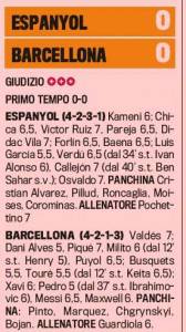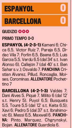 BARCELLONA (Spagna) – Ieri il Barcellona è stato fermato sul pareggio a reti inviolate sul campo dell’Espanyol sempre molto ostico per i blaugrana. Ecco tutti i risultati di Liga con i voti e il video della gara dei catalani che saranno i prossimi avversari dell’Inter. Oggi gioca il Real Madrid che può accorciare le distanze in vetta.