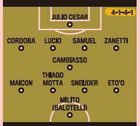 MILANO – La sfida nella sfida, per Josè Mourinho, è quella di riuscire ad indovinare gli uomini adatti per battere un ‘dream team’ come quello dei Campioni d’Europa del Barcellona. Per l’occasione, il tecnico di Setubal, potrebbe optare per un modulo differente da quelli utilizzati nel corso di questa stagione, un 4-1-4-1 rinforzando il centrocampo spezzare il gioco ‘blaugrana’. Confermata la marcatura a uomo di Capitan Zanetti su Lionel Messi, in attacco l’unica punta potrebbe essere il ‘Principe’ Diego Milito.