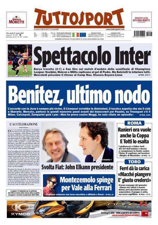 Il quotidiano torinese Tuttosport, molto vicino agli ambienti della Juventus, parla del calciomercato bianconero con l’imminente arrivo in panchina di Rafa Benitez, manager del Liverpool. Lo spagnolo aspetta il licenziamento da parte della dirigenza inglese mentre quest’ultima ha già dichiarato che dovrà essere l’ex tecnico del Valencia a dare le dimissioni dall’incarico.