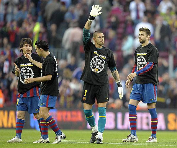 BARCELLONA (Spagna) – Al termine del vittorioso match contro lo Xerex, domato per 3-1, i giocatori del Barcellona hanno indossato una maglietta nera che farà tremare i tifosi dell’Inter. Una frase in catalano, scritta sul davanti della maglia recita: “Vendermo cara la pelle” – e sul retro – “Vi aspettiamo tutti al Camp Nou”. Si preannuncia una partita di Champions League da brividi…