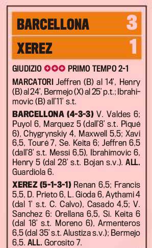 BARCELLONA Giocare con lo Xerez pensando all’Inter. Un Barcellona inedito, distratto e poco raccomandabile in alcuni elementi di secondo piano batte 3-1 con qualche sofferenza di troppo una squadra al debutto assoluto al Camp Nou e ultimain classifica con un distacco record di 60 punti. Ossessione A complicare una partita sulla carta semplicissima la voglia degli avversari ma soprattutto le scelte di Guardiola e quell’idea fissa di colore nerazzurro. Tale l’ossessione che a fine partita i giocatori del Barça si sono infilati delle magliette nere già preparate con un doppio messaggio per gli oltre 80.000 tifosi venuti ieri al Camp Nou. Il tema di fondo è la «remuntada»: «Ci giocheremo la pelle» e «Mercoledì tutti al Camp alle 20» i due messaggi lanciati attraverso il fronte e il retro della t-shirt. Istruzioni Le stesse due frasi sono state riprodotte su 50.000 cartoncini distribuiti fuori dallo stadio, con alcune istruzioni: i tifosi devono cercare di essere già dentro lo stadio 45 minuti prima dell’inizio della gara e se possibile venire tutti con la maglia del Barça. Mercoledì poi il Camp Nou prenderà formae colore grazie a 90.000 tessere di un mosaico disegnato per la gara con l’Inter e creato grazie all’aiuto dei tifosi. Il Barça ha registrato anche due spot televisivi che andranno in onda in questi 3 giorni. È la partita dell’anno, mentre quella con lo Xerez era una formalità possibilmente traditrice.