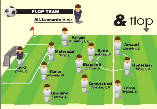 MILANO – Chi aveva scelto questi giocatori per la propria formazione del ‘Fantacalcio’ della scorsa settimana, avrà avuto un lunedì mattina piuttosto amaro. Stiamo parlando degli undici peggiori giocatori, scelti dal ‘Corriere dello Sport’, della scorsa giornata di campionato tra i quali spiccano il viola Vargas, colpevole di aver fallito un calcio di rigore, il cagliaritano Cossu e i bianconeri Camoranesi e Amauri.