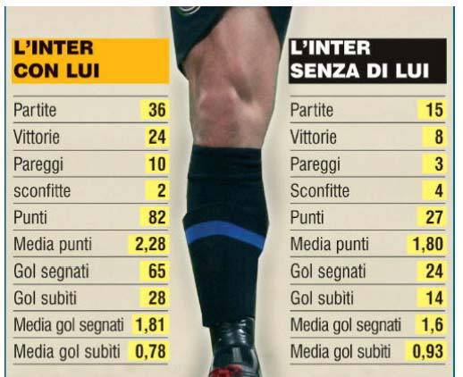 MILANO – Il recupero di Wesley Sneijder, o meglio l’ufficialità del fatto che l’infortunio era solo pretattica, rinforza le fiducia interista: come scrive oggi il ‘Corriere dello Sport’, che lo illustra bene anche attraverso una tabella, con l’olandese l’Inter ha raggiunto i suoi risultati migliori. Senza contare che i suoi gol, in Champions, hanno trascinato la squadra fino al Camp Nou. Insomma è lui l’uomo in più e contro i blaugrana non poteva certo mancare…