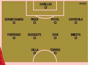 MADRID (Spagna) – C’è grande attesa per vedere i Campioni d’Europa all’opera nel Mondiale che partirà fra meno di un mese e mezzo in Sudafrica. Stiamo parlando della Spagna che è anche una squadra piena di campioni che giocano quasi tutti i grandissimi club come Barcellona, Real Madrid ma anche in giro per l’Europa come Liverpool e Arsenal. Ecco la probabile formazioni titolare delle ‘Furie Rosse’ presa dalla Gazzetta dello Sport.