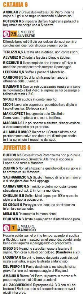 CATANIA – La Juventus è matematicamente fuori dalla prossima Champions League. Tutto questo dopo dell’ennesima prestazione deludente, questa volta i bianconeri non sono andati oltre il pareggio in quel di Catania con il solo Marchisio che ha lottato e trovato il gol del pareggio. Nei siciliani ottime le prove di Maxi Lopez e Silvestre, quest’ultimo autore del gol etneo.