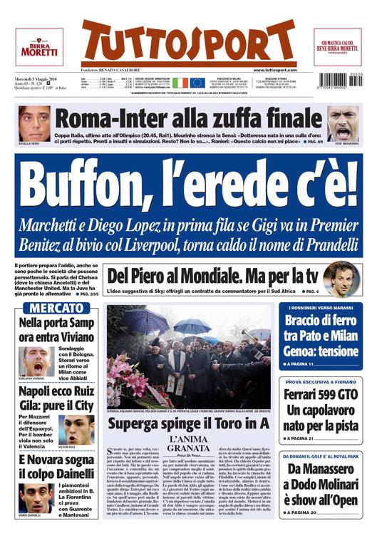 Tuttosport parla invece del calciomercato della Juventus che potrebbe prevedere la cessione di Gianluigi Buffon in Premier League o nel Manchester United o nel City. In cambio a Torino potrebbe arrivare o Marchetti del Cagliari o Diego Lopez del Villareal. Intanto sul fronte allenatore torna prepotentemente la candidatura di Cesare Prandelli visti i ritardi dell’operazione Benitez.