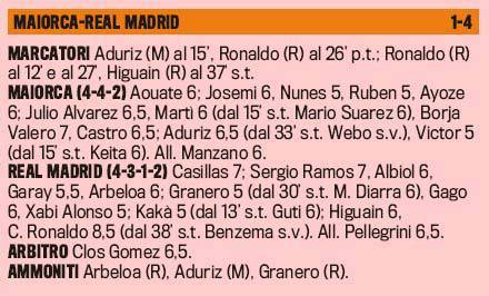 MAIORCA (Spagna) – Il Real Madrid esce con il morale altissimo dalla complicata sfida di Maiorca, trascinato dal suo uomo immagine: Cristiano Ronaldo prende per mano i compagni nel momento più difficile della stagione e li porta alla vittoria, segnando 3 gol e mandando una cartolina a Barcellona. I ‘blancos’ restano a -1 dai blaugrana, promettendo battaglia per il titolo fino all’ultimo minuto. Ecco il quadro di tutti i risultati di ieri: