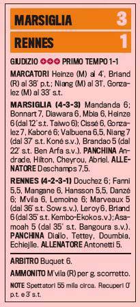 Nice-Bordeaux 1-1, Lens-Grenoble 1-1, Lione-Auxerre 2-1, Nancy-Le Mans 3-2, Toulouse-Lille 0-2, Lorient-Monaco 2-2, Sochaux-Montpellier 0-1, Boulogne-St. Etienne 0-1, PSG-Valenciennes 2-2, OM-Rennes 3-1