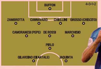 ROMA – Oggi la Gazzetta dello Sport ha riportato la probabile formazione dell’Italia ai prossimi Mondiali. In difesa dovrebbe esserci la coppia della Juventus Chiellini-Cannavaro, con Zambrotta a destra mentre a sinistra dubbio Grosso-Criscito. In attacco Iaquinta è sicuro del posto mentre il compagno di reparto potrebbe essere uno tra Gilardino e Di Natale. A centrocampo dubbio Camoranesi-Pepe. Ecco la formazione.
