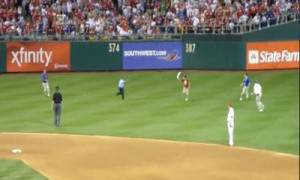 PHILADELPHIA (Stati Uniti) – Se in America i tanto discussi taser (congegni elettronici che permettono di elettrificare una persona tramite dei conduttoti elettrici) fanno parte dell’equipaggiamento delle forze di polizia non c’è da sorprendersi se, anche in uno stadio di baseball, si verificano episodi del genere. Il malcapitato è un giovane tifoso dei Philadelphia Phillies che, dopo aver superato indenne la sorveglianza di sicurezza, corre sul campo da gioco sventolando un vessillo della propria squadra. Un agente munito della pistola taser rincorre il 17enne e lo colpisce facendolo cadere a terra.