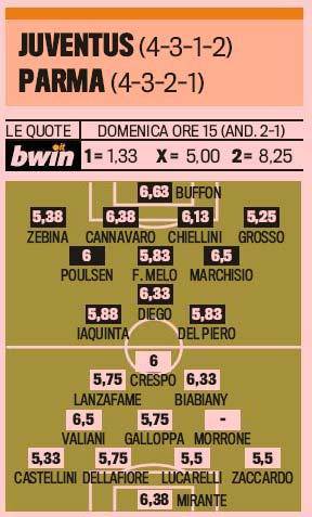 TORINO – In vista del match di domenica pomeriggio contro il Parma, Alberto Zaccheroni, tecnico della Juventus, ripropone Grosso dal primo minuto, mentre a centrocampo Diego vertice avanzato del rombo dietro alla coppia d’attacco Iaquinta-Del Piero. Nel Parma Guidolin ripropone Crespo dal primo minuto, alle sue spalle il duo Lanzafame-Biabany, in difesa torna Zaccardo. Ecco le formazioni secondo la Gazzetta dello Sport.