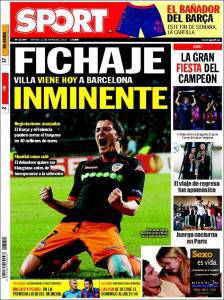 Sul quotidiano catalano Sport si parla del calciomercato del Barcellona che dovrebbe a breve ufficializzare l’acquisto di David Villa, bomber spagnolo del Valencia. L’acquisto di Villa dovrebbe portare al sacrificio di Henry e forse di Ibrahimovic che nella prima stagione in maglia blaugrana ha tradito le attese della società e dei tifosi catalani. Per lui si parla di un clamoroso ritorno alla Juventus.
