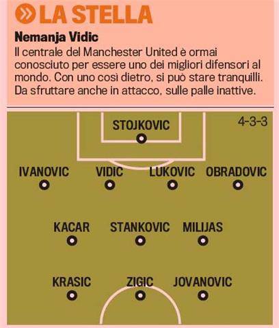 MILANO – Sempre grazie alla ‘Gazzetta’, vediamo l’11 della Serbia, guidata in campo dall’interista Dejan Stankovic. Una formazione davvero temibile, con elementi di spicco quali Krasic e Vidic, già affermati nelle rispettive squadre e possibili protagonisti del mercato estivo. Soprattutto in chiave Juventus…