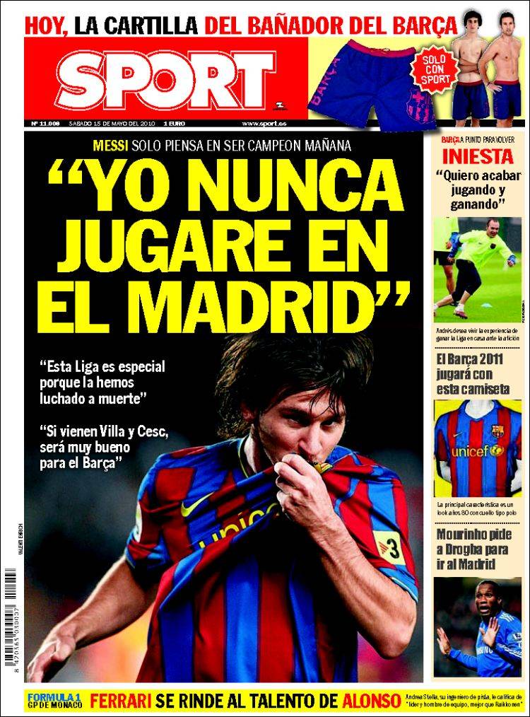 Sull’altro quotidiano catalano Sport si parla di Josè Mourinho che potrebbe approdare sulla panchina del Real Madrid. Il portoghese potrebbe chiedere l’acquisto di Didier Drogba, attaccante ivoriano del Chelsea pupillo dello Special One ai tempi in cui era manager dei “Blues”. Il tecnico dell’Inter ha confermato di voler allenare il Real Madrid nella sua carriera anche se non ha specificato se lo farà dalla prossima stagione.