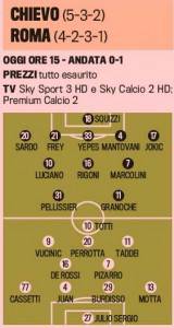 VERONA – Anche per la Roma oggi è una partita importante, infatti i giallorossi sono obbligati a tifare Siena, sperando che l’Inter si fermi in terra toscana e i giallorossi devono assolutamente vincere contro il Chievo per sperare ancora allo scudetto. La società capitolina ha un solo risultato per tentare di vincere il titolo: vincere, tutto poi dipenderà dal risultato dei nerazzurri impegnati a Siena, ecco le probabili formazioni della gara prese dalla Gazzetta dello Sport.