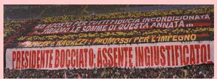 MILANO – Ieri durante la partita del Milan che è finita 3 a 0 contro una grande rivale cioè la Juve, c’è stata una contestazione da parte dei tifosi che era indirizzata soprattutto alla società ed al presidente Silvio Berlusconi. Infatti gli unici a non esser contestati sono stati i giocatori e Leonardo, ringraziati dai tifosi per l’impegno. Ecco la foto presa dalla Gazzetta dello Sport che ritrae la contestazione della curva rossonera.