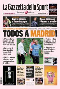 Sulla Gazzetta dello Sport si parla della partenza dell’Inter destinazione Madrid dove sabato sera giocherà la finale di Champions League contro il Bayern Monaco. I nerazzurri sbarcheranno nella capitale spagnola questa sera verso le 22. Intanto la moglie dello Special One starebbe cercando casa a Madrid in vista dell’arrivo sulla panchina del Real del tecnico portoghese.