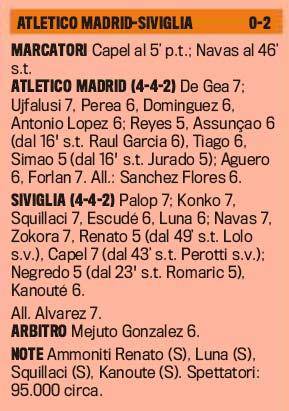 SIVIGLIA (Spagna) – Ecco i voti di ‘Gazzetta dello Sport’ il giorno dopo il trionfo del Siviglia nella Copa del Rey. Tra i nuovi campioni nessuno distanzia gli altri per rendimento: tanti 7 in pagella a testimoniare una partita molto solida di tutto il gruppo. Tra le fila dell’Atletico Madrid, invece, si salvano solo Forlan, Ujfalusi ed il portierino De Gea, uno dei n°1 più promettenti a livello europeo: