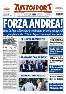 Il quotidiano torinese Tuttosport parla della nuova Juventus che ieri si è formata durante il consiglio d’amministrazione con Andrea Agnelli nominato ufficialmente nuovo presidente della Juventus. Ieri giornata importante anche per Beppe Marotta, nuovo direttore generale e per Gigi Delneri, neo tecnico bianconero che ha firmato un contratto fino al 2012 con la società torinese.