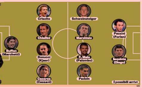 TORINO – La Juventus inizia ad operare sul mercato. La squadrà sarà rinforzata in tutti i reparti, proprio per questo motivo, sembra che Marotta voglia puntare su Bonucci per irrobustire la difesa. Se non si riuscisse a trovaer l’accordo con Bari e Genoa si virerà su Kjaer. Per le fasce si cercherà di trattenere Caceres e riportare a casa Criscito, mentre per il centrocampo a destra arriverà uno tra Krasic e Padoin e per la sinistra Marotta sta provando a trattare Schweinsteiger, inserendo come contropartita Diego. A centrocampo il punto fermo rimane Marchisio, al cui fianco dovrebbe esser confermato Felipe Melo, ma se da Londra arrivasse un’offerta importante, il brasiliano sarebbe ceduto. Per sostituirlo si pensa a Palombo. In attacco si cerca un centravanti che si integri con Iaquinta e Pazzini sembra essere il prescelto. Se non si riuscisse ad arrivare al sampdoriano si punterebbe su Forlan, inserendo il cartellino di Tiago per abbassare la richiesta economica dell’Atletico Madrid.