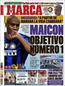 Il quotidiano madrileno Marca parla della campagna acquisti del Real Madrid. Per la stampa iberica il prossimo allenatore delle “merengues” sarà Josè Mourinho che avrebbe chiesto già l’acquisto di Maicon, terzino brasiliano dei nerazzurri. L’acquisto dell’ex Monaco permetterebbe a Sergio Ramos di giocare come centrale di difesa con la benedizione dello Special One.