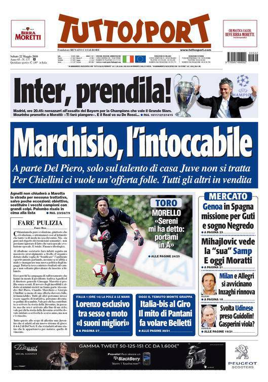Il quotidiano torinese Tuttosport parla del calciomercato bianconero con il centrocampista italiano unico intoccabile della rosa. Tutti gli altri sono invece incedibili ed anche Chiellini potrebbe partire qualora arrivasse un’offerta importante soprattutto da parte di club inglese, il Manchester City su tutti. Nel frattempo Marotta e Delneri sono già al lavoro per costruire la nuova Juventus.
