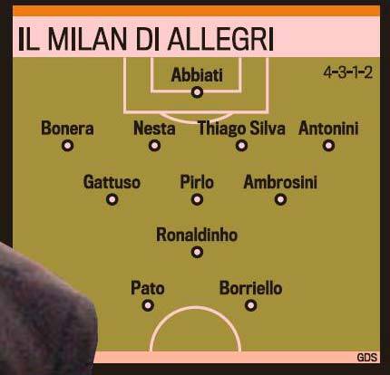 MILANO – Il quotidiano milanese La Gazzetta dello Sport, ha ipotizzato la probabile formazione che adotterà il Milan nella prossima stagione se nella panchina come si vocifera nelle ultime ore, si siederà l’ex tecnico del Cagliari Massimiliano Allegri. Come potete vedere dalla foto, non ci sono probabili acquisti e quindi i giocatori sono gli stessi di questa stagione anche se potrebbero esserci cessioni o acquisti durante l’estate.