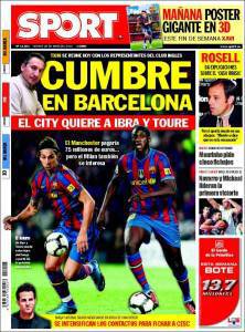 Sul quotidiano catalano Sport si parla del calciomercato del Barcellona con il Manchester City di Roberto Mancini che ha chiesto il cartellino di Zlatan Ibrahimovic e Yaya Tourè offrendo 75 milioni di euro. Lo svedese potrebbe così ritornare a lavorare con il tecnico italiano dopo l’esperienza all’Inter di qualche anno fa, mentre l’ivoriano è un vecchio pallino dell’ex tecnico nerazzurro.