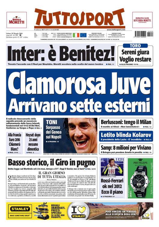 TORINO – Come sempre il quotidiano di Torino, Tuttosport tratta, in prima pagina, le questioni di casa Juventus. Per il club bianconero, secondo il quotidiano, sarebbero pronti gli acquisti di sette esterni. Il modulo di Luigi Del Neri, infatti, richiede la presenza in rosa di giocatori abili sugli esterni. Tra i nomi fatti ci sono quelli di Juan Manuel Vargas e Pepe. Spazio anche al mercato di altri club, con Kolarov ad un passo dal Real Madrid. La Sampdoria ha, invece, pronti 8 milioni di euro per assicurarsi l’estremo difensore Emiliano Viviano. In casa rossonera, invece, Berlusconi assicura che non venderà il club.