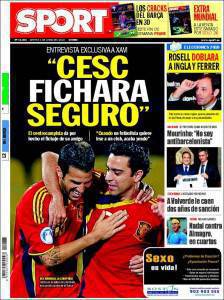 Sul quotidiano catalano Sport intervista esclusiva al centrocampista del Barcellona e della Nazionale spagnola Xavi, che ha parlato del compagno di Nazionale Cesc Fabregas, molto vicino ad indossare la maglia blaugrana. Il giocatore iberico ha voluto rassicurare i tifosi dicendo che Fabregas vuole fortemente giocare nel Barcellona ed ha già chiesto all’Arsenal di lasciarlo andare.