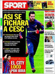 L’altro quotidiano catalano Sport parla dell’operazione di mercato che il Barcellona sta studiando per acquistare Cesc Fabregas, centrocampista iberico dell’Arsenal. La società londinese ha rifiutato una prima offerta iniziale di 35 milioni di euro, per questo il Barça è pronto ad alzare l’offerta con il giocatore che continua a far pressione sul club londinese affinchè accetti l’offerta dei blaugrana.