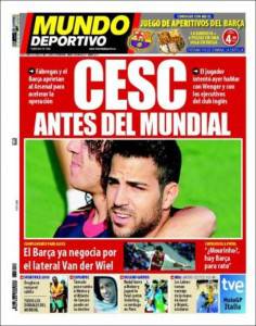 BARCELLONA (Spagna) – Oggi i quotidiani spagnoli non sono molto d’accordo, infatti Marca diceva che Cesc Fabregas sarebbe vicino al Real Madrid mentre il Mundo Deportivo riporta un’eventuale trattativa tra il Barcellona ed il giocatore spagnolo dell’Arsenal che potrebbe arrivare al Camp Nou dopo il Mondiale che sta per cominciare in Sudafrica. Intanto il Barcellona lavora sul laterale olandese dell’Ajax Gregory Van der Wiel.