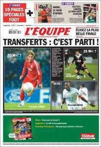 Sul quotidiano francese L’Equipe si parla della prossima campagna acquisti che potrebbe rivoluzionare alcune società. Il giornale transalpino parla della possibile cessione di Fernando Torres, attaccante spagnolo del Liverpool, che potrebbe lasciare i “Reds” per circa 70 milioni di euro. Altro prezzo pregiato è l’ex milanista Gourcuff che ha un prezzo di cartellino di 25 milioni di euro.
