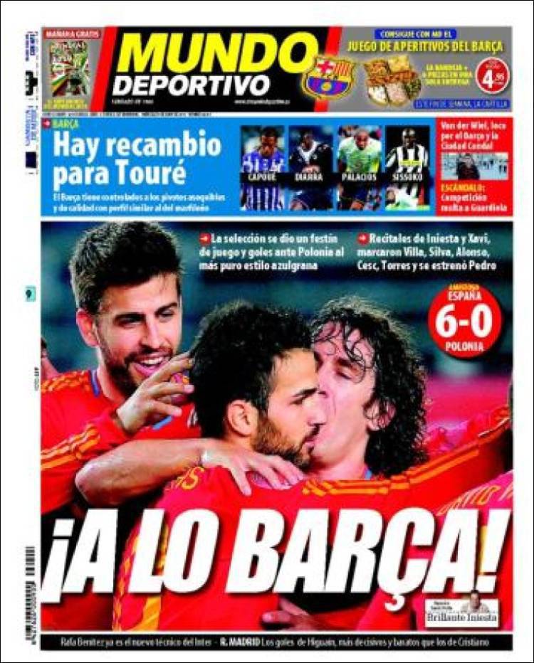 Sul quotidiano catalano Mundo Deportivo si parla del calciomercato Barcellona che potrebbe perdere il centrocampista ivoriano Yaya Tourè cercato con insistenza da Roberto Mancini per il suo Manchester City. Quattro i candidati alla sostituzione del giocatore africano, tra questi anche Sissoko, centrocampista maliano della Juventus che potrebbe lasciare Torino.