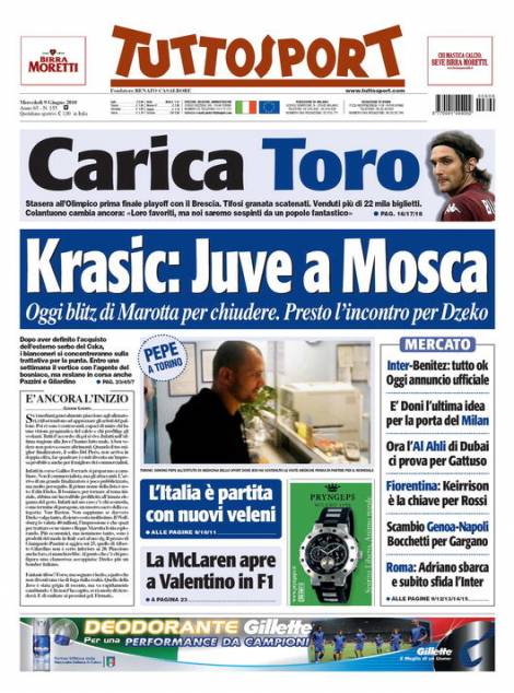 Il quotidiano torinese Tuttosport, molto vicino alla Juventus, parla del calciomercato bianconero che dopo l’arrivo di Pepe dall’Udinese è pronto a sferrare un altro grande colpo: Milan Krasic, esterno serbo del Cska Mosca. I dirigenti di Corso Galileo Ferraris dovrebbero effettuare un blitz a Mosca per trovare l’accordo con la società russa visto che con il giocatore è già stata trovata l’intesa.