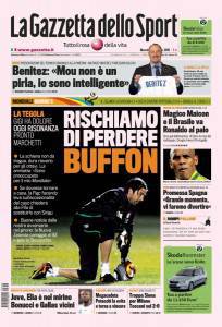 MILANO – Brutta tegola per l’Italia che come riporta e sottolinea in prima pagina la Gazzetta dello Sport, rischia di perdere Gigi Buffon per tutto il Mondiale. Il portierone ha di nuovo accusato problemi alla schiena che già aveva avuto in precedenza facendogli saltare molte partite di questo campionato e facendolo giocare con scarso rendimento anche quando partiva titolare.