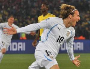PRETORIA (Sudafrica) – Importante vittoria per l’Uruguay nella seconda gara del girone mondiale a scapito del Sudafrica per 1 a 0. La rete decisiva è stata messa a segno dal migliore in campo, Diego Forlan. Gara subito attiva sin dai primi minuti con le due squadre intente a superarsi sin dalle prime battute. Dopo un paio di occasioni a testa è l’attaccante dell’Atletico Madrid, oggi schierato in coppia col palermitano Cavani, a portare in vantaggio i sudamericani con un tiro leggermente deviato che si insacca sotto la traversa. Nella ripresa padroni di casa che tentano una reazione, ben contenuta però dagli uomini di Tabarez, che raddoppiano poi ancora con Forlan che realizza un calcio di rigore per fallo del portiere sudafricano su Suarez che è costato il rosso all’estremo difensore. Negli ultimi minuti, a partita ormai virtualmente chiusa arriva la rete di Pereira che chiude sullo 0-3. Ora l’Uruguay sale a 4 punti, mentre il Sudafrica rimane fermo ad 1.