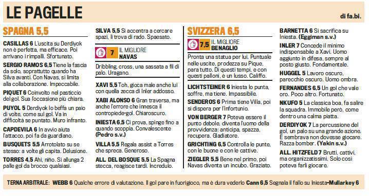 PRETORIA (Sudafrica) – La Spagna di Del Bosque ha deluso tutti. I giornali spagnoli ed internazionali hanno bocciato senz’appello la formazione iberica, il cui uno dei pochi a salvarsi è stato il basco Xabi Alonso.