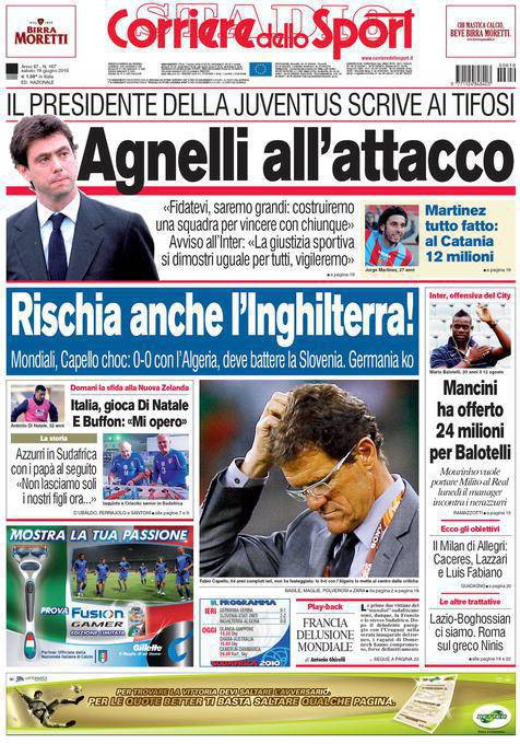 Sul Corriere dello Sport si parla della lettera scritta ai tifosi della Juventus dal presidente Andrea Agnelli. Il dirigente bianconero ha voluto rassicurare i tifosi della Vecchia Signora promettendo la costruzione di una squadra forte in ogni reparto che possa competere contro chiunque. Agnelli ha poi parlato di Giustizia Sportiva dicendo che la Juventus vigilerà sullo svolgimento dei prossimi processi.
