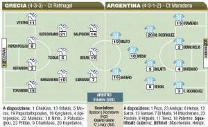 POLOKWANE (Sudafrica) – Questa sera l’Argentina di Maradona, già virtualmente qualificata, cercherà la terza vittoria su altrettante partite per volare a pieni punti in testa al girone. Maradona opterà per un massiccio turnover, proponendo la coppia d’attacco Milito-Aguero con Messi dietro ad ispirare. In difesa spazio all’interista Burdisso mentre a centrocampo ci sarà il viola Bolatti. Ecco le formazioni secondo il Corriere dello Sport.