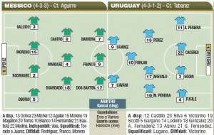 RUSTENBURG (Sudafrica) – Il match tra Uruguay e Messico potrebbe decidere le sorti della Francia. Ad entrambe le formazioni basterebbe un pareggio per approdare agli ottavi di finale ed eliminare i francesi. Tuttavia sia gli uruguagi che i messicani vorrebbero evitare di incontrare l’Argentina agli ottavi di finale per questo potrebbe prevalere la voglia di vincere. Ecco le formazioni del Corriere dello Sport.