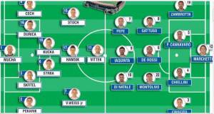 JOHANNESBURG (Sudafrica) – Marcello Lippi ha sciolto gli ultimi dubbi: a meno di clamorosi ribaltoni dell’ultima ora l’Italia scenderà in campo contro la Slovacchia con un 4-3-3 che vedrà l’inserimento di Gattuso a centrocampo. Niente da fare per Pazzini che sarà in panchina assieme a Gilardino, in attacco il tridente sarà formato da Di Natale-Iaquinta-Pepe. Ecco la formazione secondo il Corriere dello Sport. Negli slovacchi occhi puntati naturalmente sul “napoletano” Marek Hamsik, fulcro fondamentale della manovra della Slovacchia.
