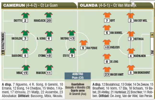 JOHANNESBURG (Sudafrica) – Detto del girone degli azzurri, che si risolverà prima di cena, spazio al raggrupamento dominato dall’Olanda (F): stasera sarà sfida “fratricida” tra i nerazzurri Eto’o e Sneijder in Camerun-Olanda, anche se in palio ci sarà solo il blasone e l’importanza di un match mondiale, visto che gli ‘orange’ sono già agli ottavi e gli africani già eliminati. Giappone-Danimarca è invece un vero e proprio spareggio, che – sperando vada tutto bene alla nostra Italia – potrebbe interessarci molto da vicino…