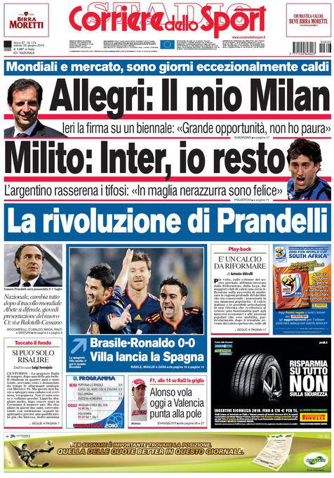 Sul Corriere dello Sport si parla del nuovo Milan di Massimiliano Allegri, neo tecnico rossonero che ieri ha finalmente messo la propria firma sul contratto che lo legherà ai rossoneri per due stagioni. L’ex allenatore del Cagliari è stato “liberato” da Cellino ed ha potuto mettere nero su bianco con la società meneghina. Ieri le prime parole, Allegri ha dichiarato di non aver paura.