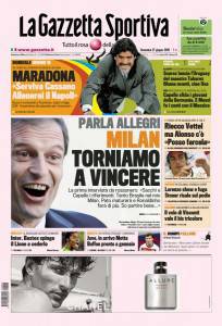 MILANO – Ieri c’è stata la prima intervista ufficiale da allenatore rossonero di Massimiliano Allegri a Milanello e nella presentazione ci sono state molte domande da parte dei giornalisti presenti in sala stampa. L’ex allenatore del Cagliari ha dichiarato di voler portare il Milan di nuovo alla vittoria e che Pato maturerà mentre Dinho farà ancora più bene nonostante venga da un’ottima stagione in cui ha realizzato tanti gol ed assist.