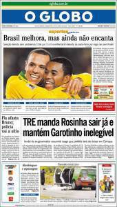 Paradossale il titolo del quotidiano brasiliano O Globo che nonostante la vittoria negli ottavi di finale per tre a zero contro il Cile non esalta più di tanto la formazione allenata da Dunga. La stampa brasiliana non hai mai gradito il gioco della Nazionale verdeoro che vorrebbe vedere ancora più spettacolare, ma la formazione di Dunga è un rullo compressore. Ora nei quarti la grande sfida contro l’Olanda.