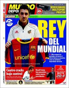 Il quotidiano catalano Mundo Deportivo omaggia il bomber della Spagna e del Barcellona David Villa, autore di quattro gol in questa rassegna Mondiale. Il giocatore spagnolo, neo acquisto blaugrana, ha dimostrato di essere il vero protagonista di questo Mondiale sudafricano, decidendo molte partite ed in particolare la sfida contro il Portogallo negli ottavi di finale.