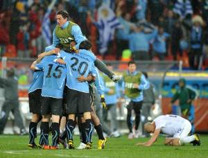 JOHANNESBURG – Si è appena conclusa al Soccer City Stadium la partita tra Uruguay e Ghana valevole per il quarto di finale. Le due squadre si sono affrontate su tutto il campo, ma soltanto ai calci di rigore l’Uruguat ha avuto la meglio. La Celeste sfiderà l’Olanda nella prima semifinale. Nell’ultimo minuto del secondo tempo supplementare, Asamoah Gyan ha tirato un rigore sulla traversa dopo il tocco di mano di Suarez sulla linea di porta. Decisivi dal dischetto gli errori di Mensah ed Adiyiah.